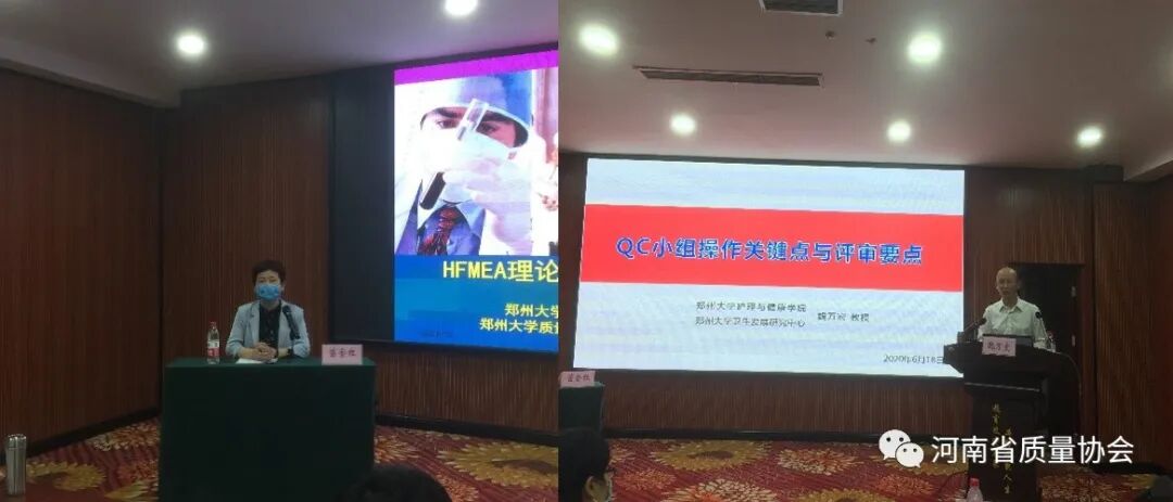 高剑波主讲了“应用多维质量管理工具,助力医院高质量可持续发展”。郑州大学教授魏万宏、副教授王宁分别主讲了“QC小组准则的解读”和“FMEA理论及操作关键点解析”;郑大一附院护理部副主任娄小平、质控处副处长苗金红分别主讲了“RCA理论及实践应用中关键点解析”和“6S管理的理论及操作要点”;河南省人民医院质量安全部主任赵琳、护理部副主任张俊梅分别主讲了“PDCA理论及操作要点解析”和“品管圈的操作要点及评审要点解析”。